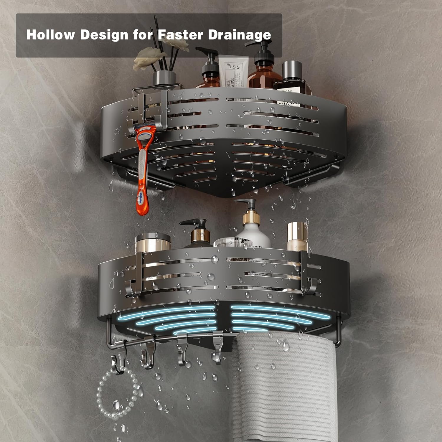 💧 Rust-Proof & Quick-Draining – Made from premium space aluminum with anti-oxidation coating, the caddy resists rust while its hollow design improves airflow, prevents water buildup, and makes cleaning effortless.