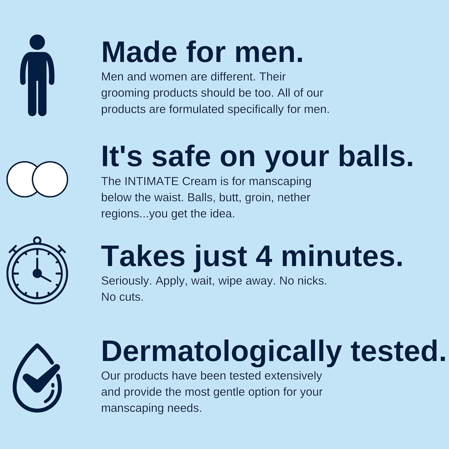 Our advanced formula gently dissolves hair below the surface for a cleaner, longer-lasting result — leaving your skin smooth, hydrated, and irritation-free. Designed for men’s coarse hair and sensitive areas, it’s the easy, pain-free way to stay groomed and confident every day. 💪✨